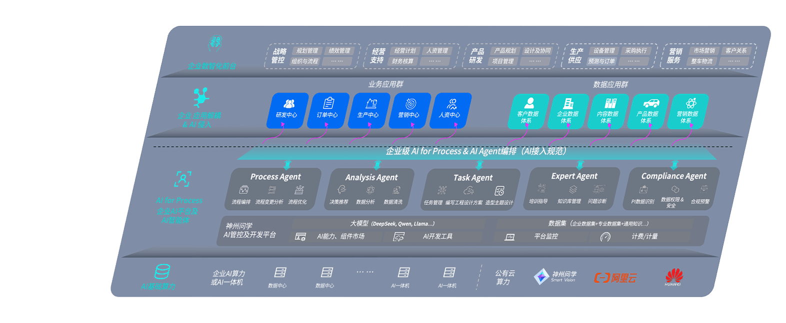 端到端的一站式AI工作空间深度融合了从企业战略规划到日常经营的全流程业务板块,,,定向解决车企内部领域多、、、、部门多、、、、链条长、、、、场景碎片化等难题,,,支持车企快速构建以AI为核心的生产力写作体系,,,实现任务执行与AI能力的无缝集成与交互